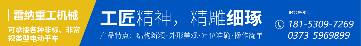 新鄉(xiāng)市雷納重工機(jī)械有限公司是一家電動平車、無軌有軌電動平車、轉(zhuǎn)彎電動軌道車、軌道平車和物料搬運(yùn)設(shè)備的生產(chǎn)廠家,致力于工廠、車間、倉儲、碼頭、鐵路等領(lǐng)域物料搬運(yùn)系統(tǒng)的開發(fā)、設(shè)計、生產(chǎn)、銷售和服務(wù)。    公司主要生產(chǎn)電動平車系列包括:KPX蓄電池供電系列電動平車、KPJ電纜卷筒供電型電動平車、KPD低壓軌道供電型電動平車、KPC滑觸線供電型電......